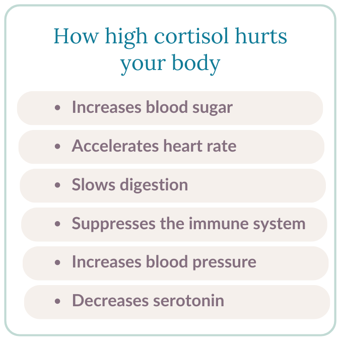 If you have chronic high cortisol it’s almost impossible to balance your other hormones. Excess cortisol is not just a matter of discomfort, either. Over time, chronic high cortisol can lead to a variety of diseases such as cancer, heart disease and Alzheimer’s. Fortunately, we’re not helpless. Let’s talk about what you can do about excess cortisol.