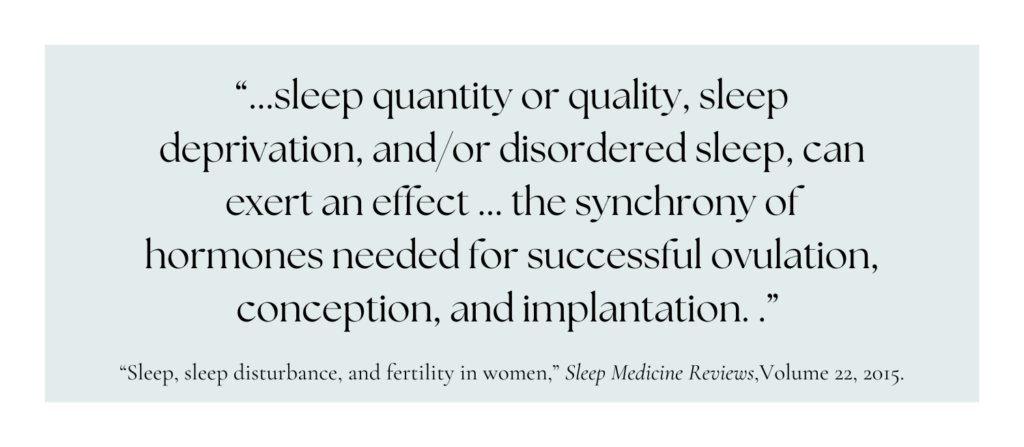 Adequate sleep plays a vital role in regulating hormones, which are key to reproductive health. When you don’t get enough sleep, your body’s ability to balance hormones like cortisol and reproductive hormones (estrogen and progesterone) can be impaired. Additionally, poor sleep may lead to insulin resistance, which can disrupt ovulatory cycles and negatively impact fertility. According to National Sleep Foundation researchers, women who average fewer than 7 hours of sleep per night were 15% less likely to conceive compared to women who got the recommended 7–9 hours of sleep.