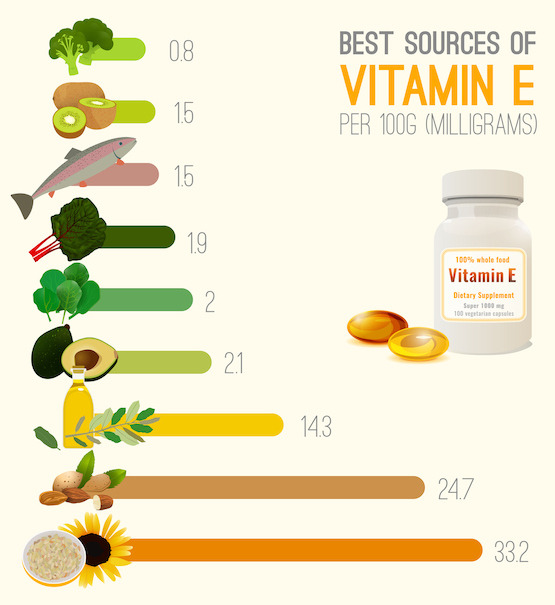 In a randomized double-blind trial study, participants who took Vitamin E found significant relief for PMS-related anxiety, depression, food cravings and water retention. As a powerful antioxidant, Vitamin E acts in the body to help reduce inflammation and oxidative stress, two significant contributors to hormonal imbalance. Good food sources of Vitamin E include almonds, sunflower seeds, spinach, avocado, kiwi and wheat germ oil.