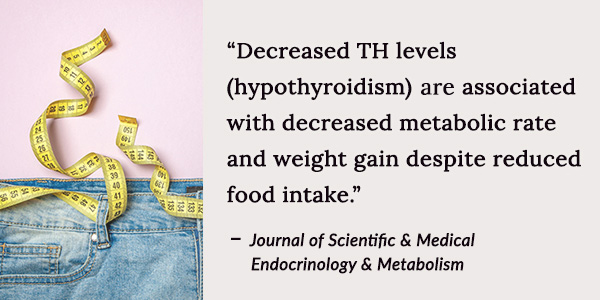 Your metabolism slows when you have hypothyroidism. But that’s not the only change happening in your body that can affect your weight. Chemical messengers that regulate our eating behavior become mixed up when thyroid hormones are imbalanced. When thyroid hormones are low — even just a little — the parts of your brain which control appetite can be significantly affected.