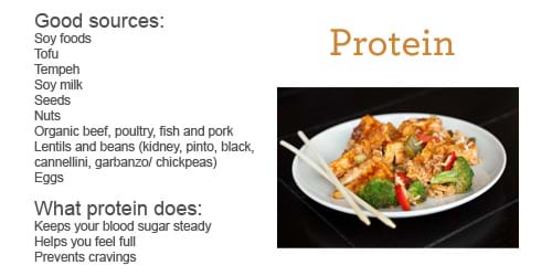 Make an extra effort to get protein at every meal, and include nuts and seeds for healthy fats, and lentils for protein. |